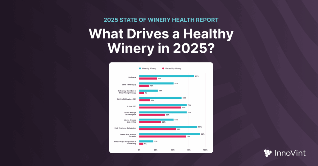 Every year, InnoVint surveys hundreds of winery professionals to understand what truly drives a healthy winery. In the 2025 State of Winery Health Report, our statistical analysis confirmed that all three dimensions matter, but financial performance stands out as the clearest signal of overall business health. Profitability, sales growth, and pricing confidence consistently separate the strongest wineries from those struggling to keep pace.