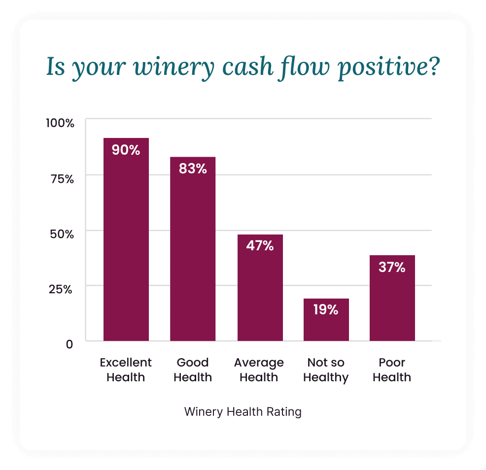 90% of successful wineries are cashflow positive, compared to only 38% of wineries with poor overall company health.