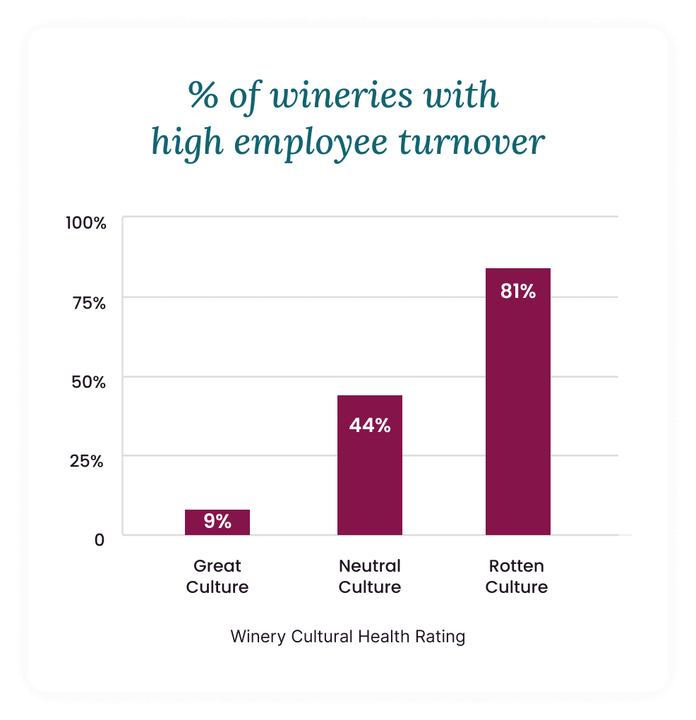 Wineries with poor company culture are 9X more likely to experience higher than average employee turnover.